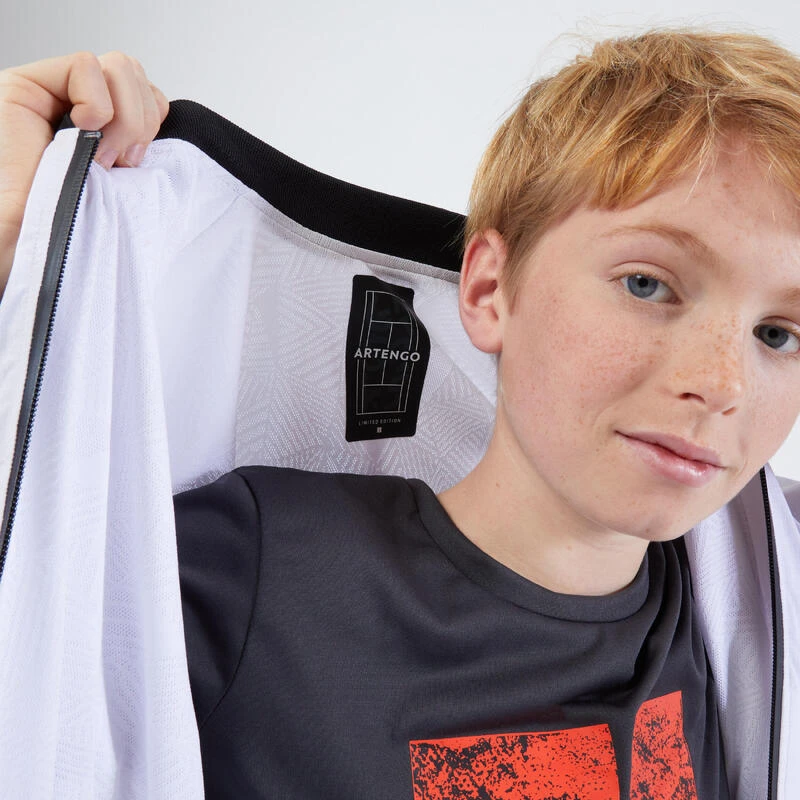 Une veste zippée à la fois légère, respirante et extensible. Nouveau style élégant et technique pour se protéger du frais et faire du sport.Une veste stylée et technique pour arriver sur les courts de tennis avec classe et élégance ! Disponible en 10/11 – 12/13 – 14/15 uniquement.